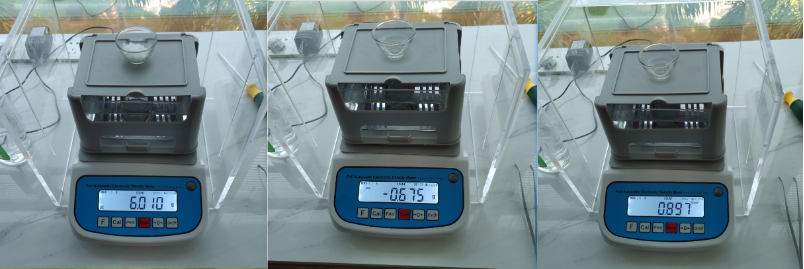 1、先将密(mì)度計進(jin)行稱重(zhòng)校準,爲(wei)得到精(jing)準的測(ce)量數據(ju)提供前(qián)提和🈲保(bǎo)證。